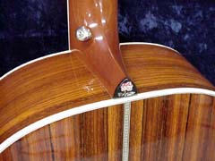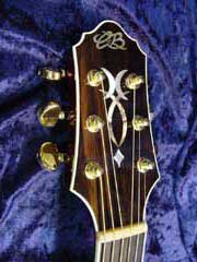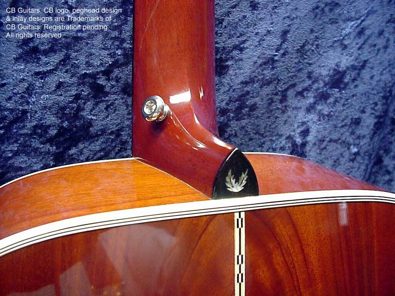 of contrasting woods, shown on Striped Macassar Ebony peghead overlay. This