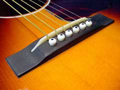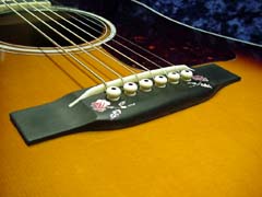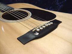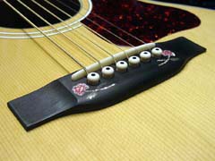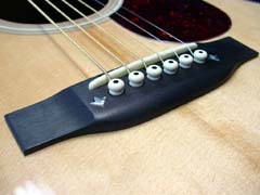 Ebony bridge with Vintage-Style bone "long" saddle. |