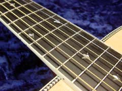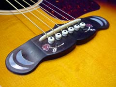 "Moustache" bridge with "Rose" inlays, bridge-wing inlays & bone "drop-in" saddle.