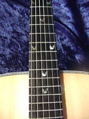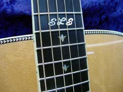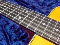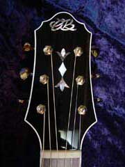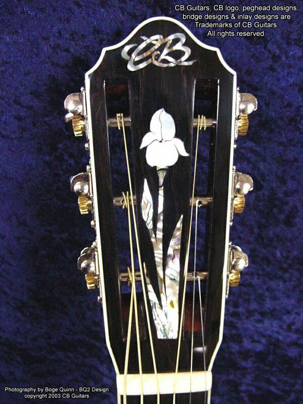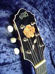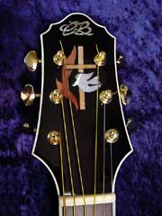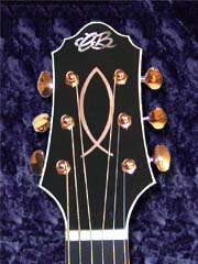 of Mother-of-Pearl and Abalone, shown on Black Ebony peghead overlay.