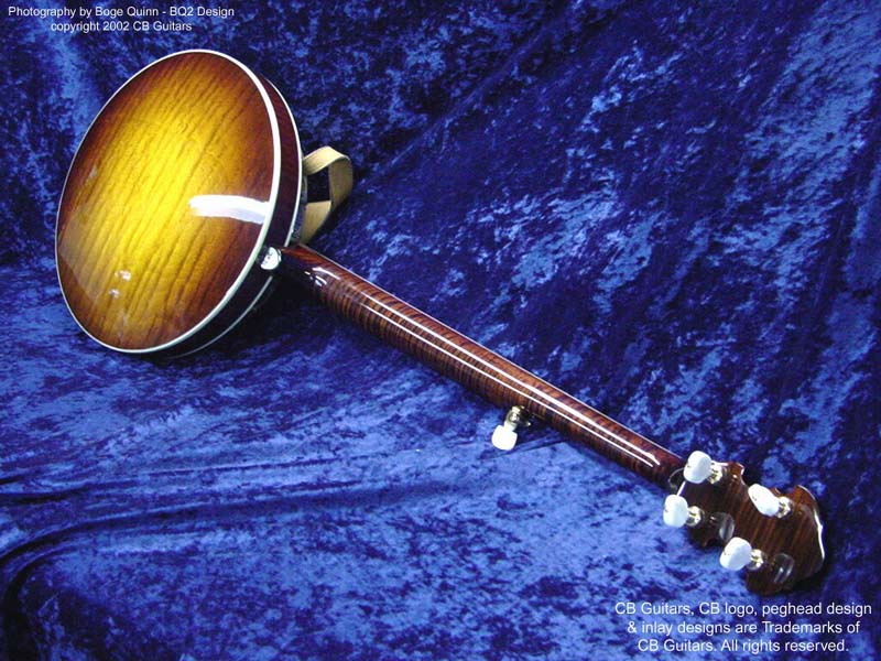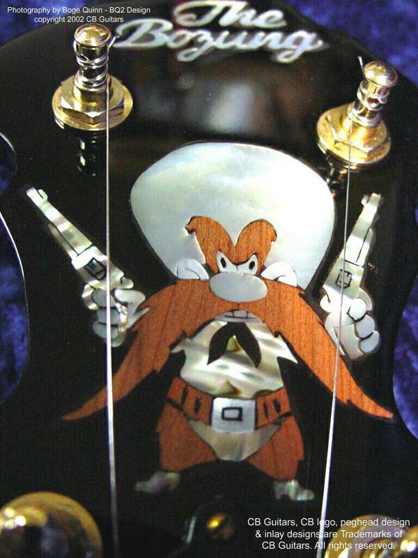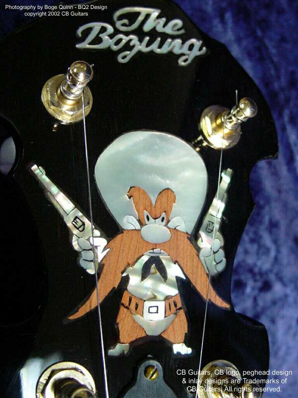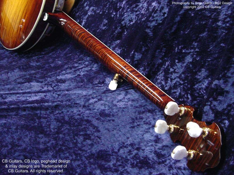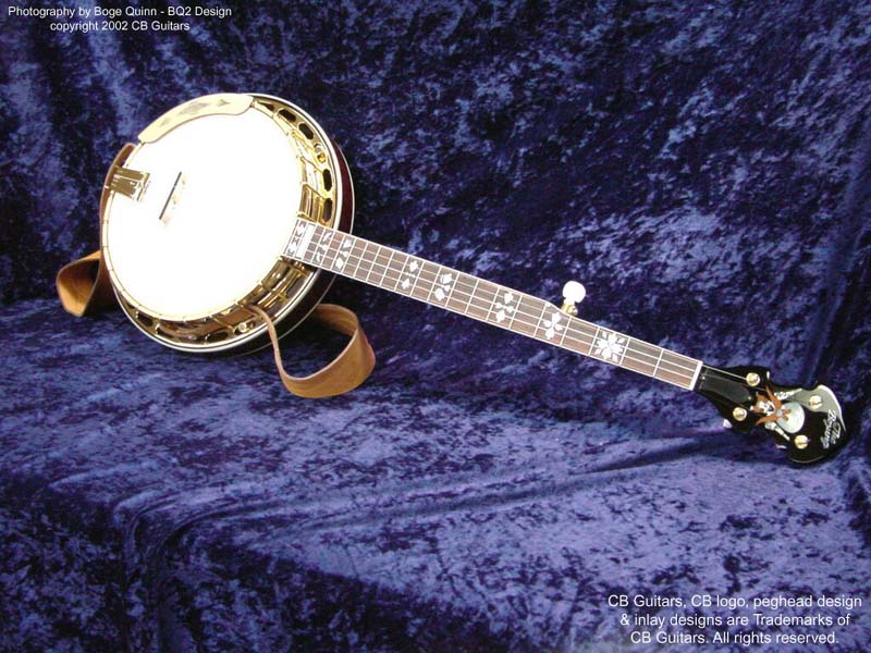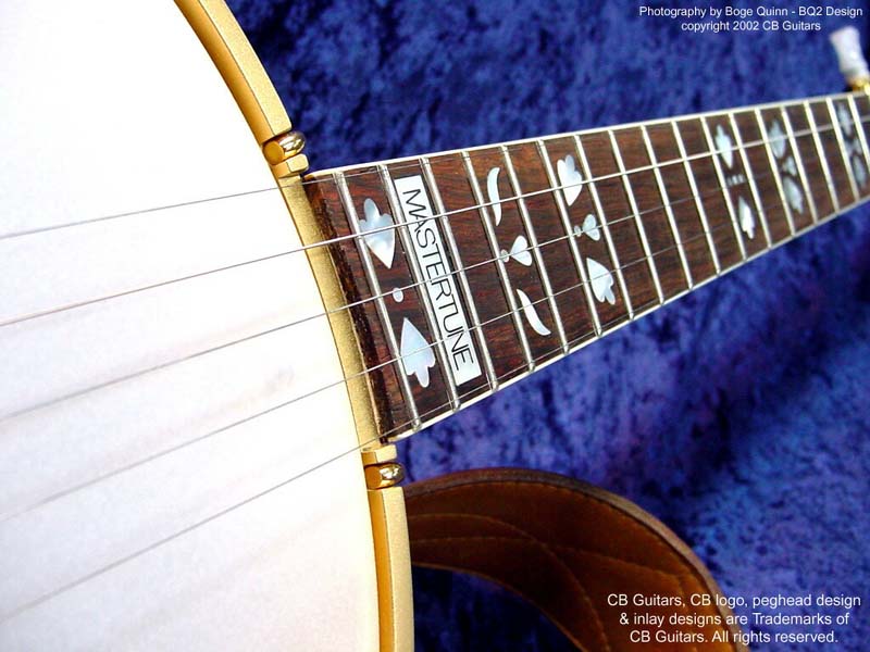The CB "Yosemite Sam" BanjoCustom made for Smithville, TN banjo player Rick Holcomb, this banjo features custom inlays designed by Chris' wife Dixie Bozung, a talented and experienced graphic artist. Click this link for sound samples of CB instruments. (click pictures for larger version)