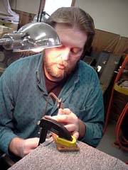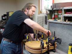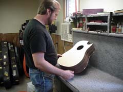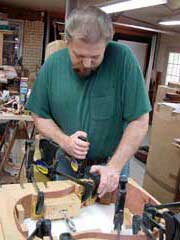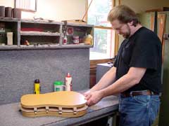 Chris hand-fabricates kerfed lining from Mahogany stock. |