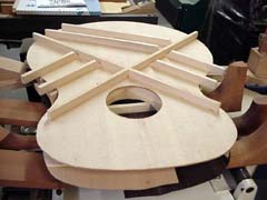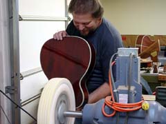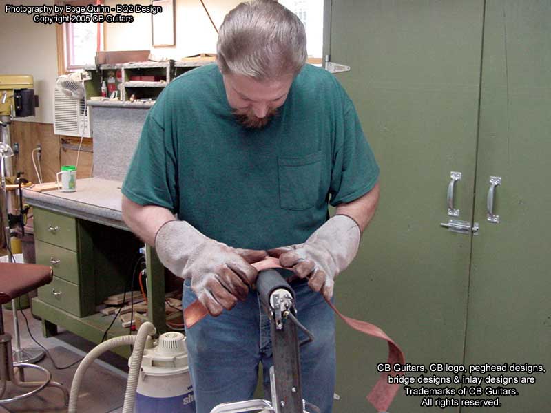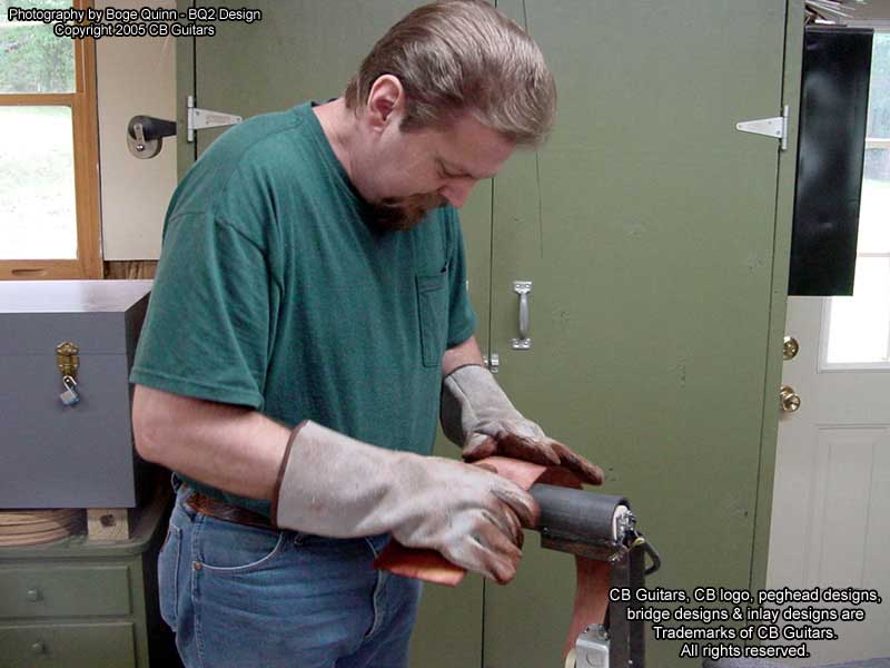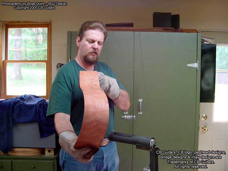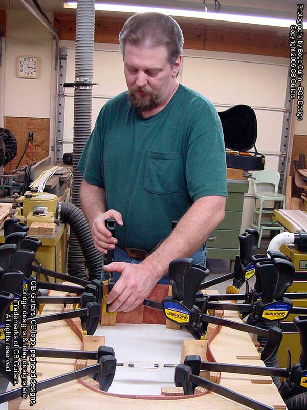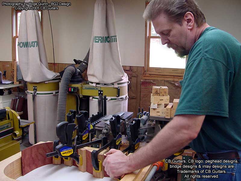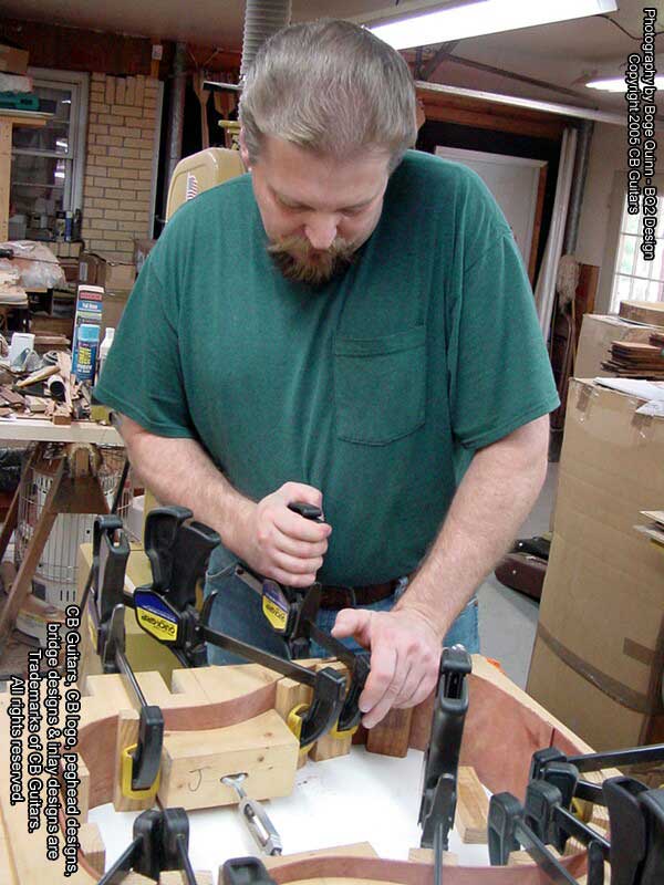 hand-shaping of braces, shown with body in form. All CB guitars feature