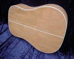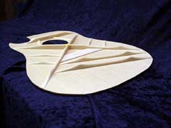 Rear view of unfinished Mahogany "Herringbone" body. |