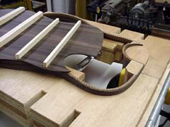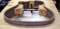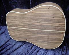 Rear view of unfinished Indian Rosewood "Herringbone" body. |