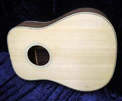 Front view of unfinished Indian Rosewood "Herringbone" body. |